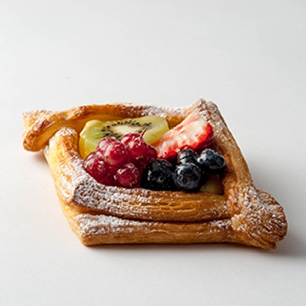 Fold a sheet of puff pastry diagonally and score along the side, 5 mm from the edge and 1 cm from the point. Then fold the section back and fold the scored section to the opposite side. This creates a bow, press down firmly where the pastry crosses so it stays fixed during baking.