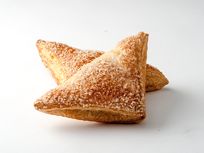 Die Scheiben auf die Arbeitsfläche legen, so dass sie auftauen können. Die Scheiben an den Rändern leicht anfeuchten. Für die Füllung alle übrigen Zutaten außer dem Kristallzucker miteinander vermischen. Die Füllung auftragen. Zuklappen, andrücken und mit Wasser bestreichen. In grobem Kristallzucker wälzen.