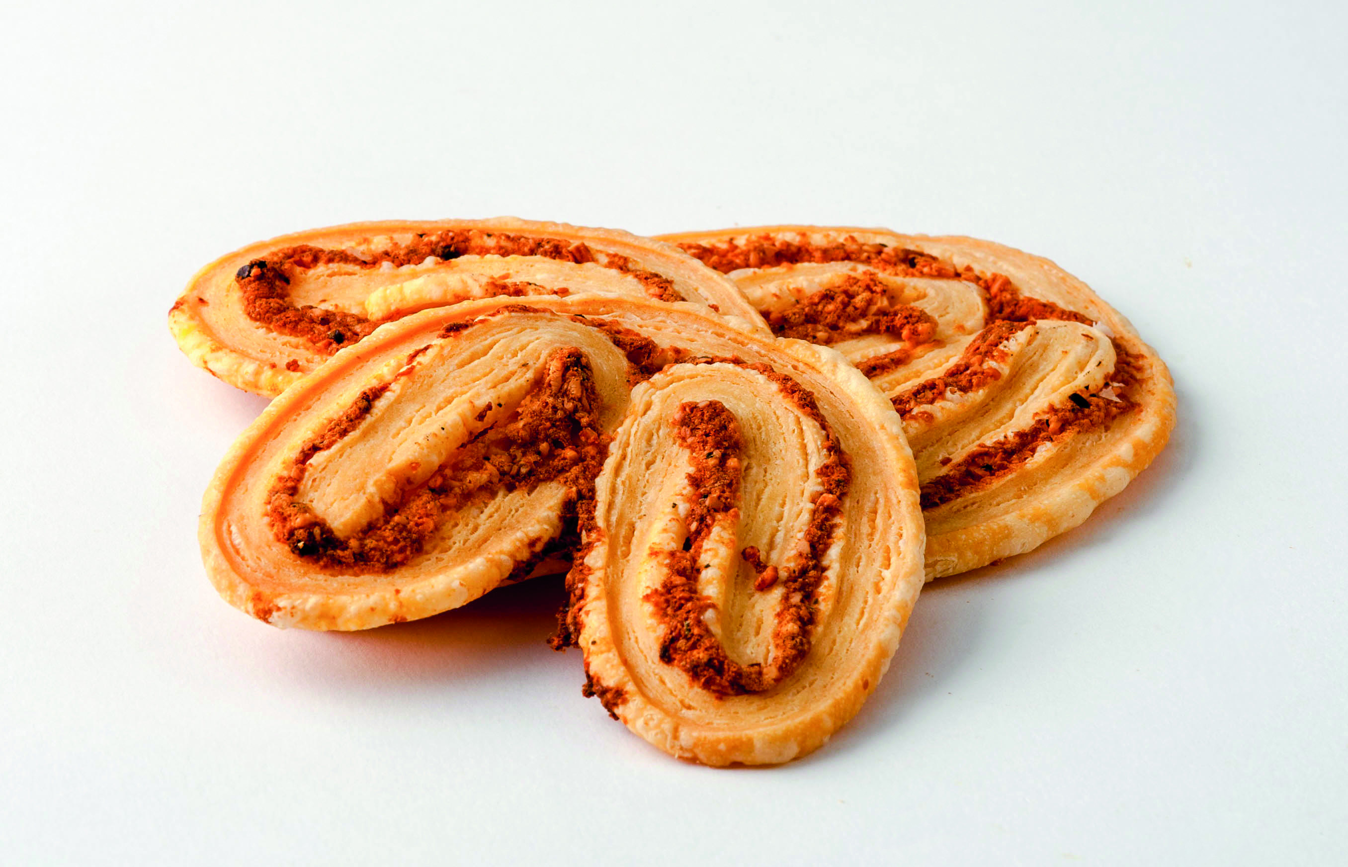 Vulling opbrengen en netjes verdelen en uitstrijken. Voor vlinders de zijkanten 2 x naar binnen vouwen, ruimte tussen de 2 banen houden en deze dan op elkaar vouwen. Banen in vriezer leggen zodat ze opstijven. Op die manier kunt u strakke koekjes snijden (4 à 5 mm). Daarna 18 tot 22 min bakken op bakpapier, oven op 200°C. Eventueel nadrogen in een flauwe oven van 100°C of droogkast.