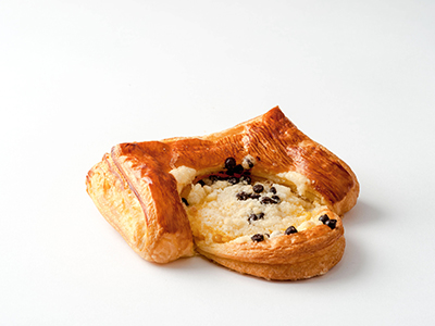 Het deeg uitrollen tot een dikte van 2,75 à 3 mm en op de werkbank leggen en vierkantjes snijden van 14 x 14 cm. Tongetje; een ronde steker centraal op het plakje plaatsen, de helft doorsteken en het gedeelte wat door gestoken is terugvouwen. Voorzien van gele room, 60 min. laten rijzen. Bak de producten volgens het bakadvies en laat ze goed afkoelen. Na afkoelen het model voorzien van Zwitserse room of gele room, vers fruit en geleren. Hier en daar bestrooien met wat poedersuiker.